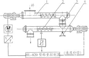 值得注意的是有的給料和稱重計(jì)量采用同一管螺旋,即通過調(diào)節(jié)稱重螺旋轉(zhuǎn)速來調(diào)節(jié)控制瞬時(shí)給料量。但從實(shí)踐證明,由于物料物性和工況等變化,螺旋轉(zhuǎn)數(shù)與其物料料流速度沒有穩(wěn)定線性關(guān)系,此時(shí)螺旋轉(zhuǎn)數(shù)(n)往往不能代表料流速度(v)。這種方案雖然簡(jiǎn)單,但難以保證。